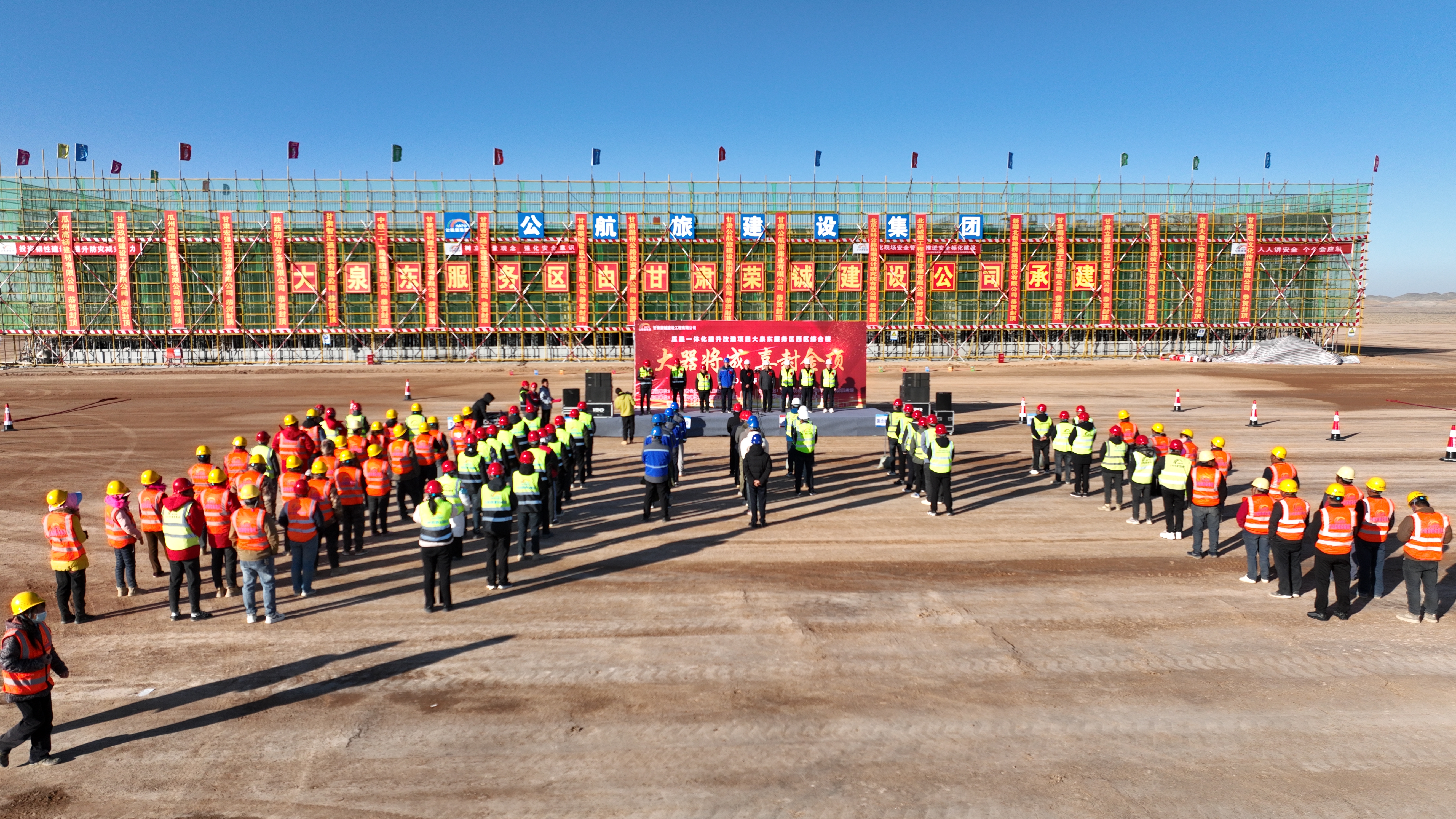• ? 瓜星一體化項目一期工程大泉東服務區綜合樓主體結構順利封頂 10-31